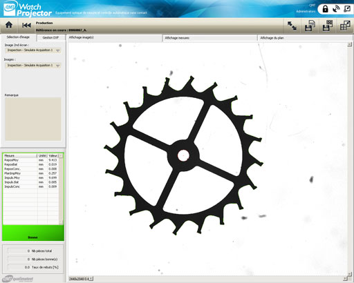 Ecran opérateur lors d'une mesure d'une roue d'ancre :