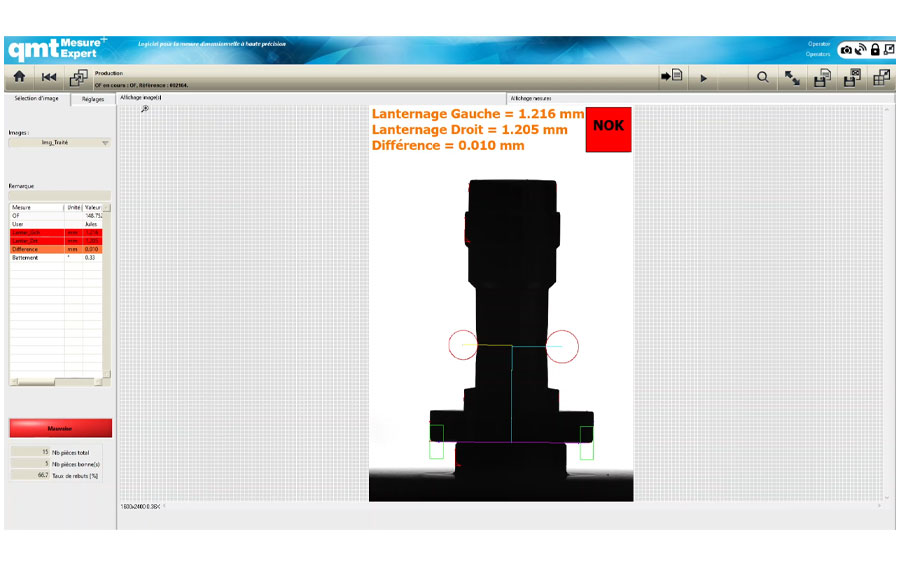 qmt a réalisé un appareil sur mesure permettant le contrôle dimensionnel des chaussées, en particulier la hauteur des bossages (hauteur de lanternage). Pour mesurer toutes les caractéristiques, la pièce est mise en rotation avec une acquisition d'images synchronisée.