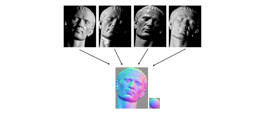 Appelée aussi «Photometric stereo », la technique consiste à observer un objet dans différentes conditions d'éclairage. Elle est basé sur le fait que la quantité de lumière réfléchie par une surface dépend de l’orientation de la surface par rapport à la source de lumière et à l’observateur. En mesurant la quantité de lumière réfléchie dans une caméra, l'espace des orientations de surface possibles est limité. Quand l’objet est éclairé avec suffisamment de sources lumineuses d'angles différents, l'orientation de la surface peut être limitée à une seule orientation.