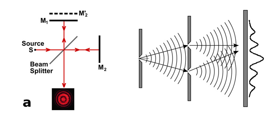 2 ondes cohérentes peuvent interférer de manière constructive (renforcement de l'intensité) si elles arrivent en phase, ou interférer de manière destructive (affaiblissement de l'intensité) si elles arrivent en déphasage.