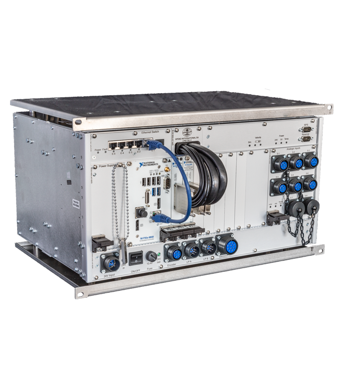 FilmwiedergabeMit der Schaffung eines Messsystems mit kontaktlosen Technologien ging die Erneuerung der Signalerfassungs- und -verarbeitungsplattform einher. Dies basiert auf einer modularen Instrumentierung im PXI-Format. Es ist in der Fahrerkabine des Zuges installiert, die die Schleifvorgänge gemäß den vom Messsystem aufgezeichneten Ergebnissen steuert. Auf dem Überwachungsbildschirm visualisiert der Fahrer die Querprofile der beiden Schienen. Dieses reale Profil wird den Vorlagen mit den vom Bahnbetreiber festgelegten Bezugspunkten überlagert. Unter jedem dieser Punkte zeigt ein Balkendiagramm an, ob das gemessene Maß innerhalb der erforderlichen Toleranzen liegt (ein Punkt außerhalb der Toleranzen wird rot angezeigt). Die Messungen in Bezug auf die Unregelmäßigkeiten der Schiene in ihrem oberen Teil (Längsprofil) werden direkt unten auf demselben Bildschirm dargestellt. Sie sind nach ihrer Wellenlänge (kurz, mittel, lang) in drei Kategorien unterteilt. Für jeden von ihnen werden Toleranzen bestimmt. Das Schleifen muss durchgeführt werden, wenn die für die Längs- und Querprofile festgelegten Werte überschritten werden. Bisher wurde das Erfassungs-, Verarbeitungs- und Überwachungssystem von drei Controllern verwaltet, die Erfassungskarten im PXI-Format zugeordnet waren. Ein PXI-Controller war für die Mensch-Maschine-Schnittstelle verantwortlich, ein anderer für die Verarbeitung von Messungen bezüglich des Querprofils der Schiene und ein letzter für die Verarbeitung von Daten bezüglich des Längsprofils. Die erste verwendete eine Anwendung, die unter der grafischen Programmierumgebung Labview von National Instruments erstellt wurde, und die beiden anderen starteten eine Anwendung, die unter Labview Real Time erstellt wurde, um die Bereitstellung von Informationen in Echtzeit sicherzustellen. Der Bediener betrachtete die Profile in Echtzeit, unmittelbar nachdem die Schleifscheiben vorbeigegangen waren. Obwohl sich Speno für Standard-PXI-Steuerungen und -Instrumente entschieden hat, hat das Unternehmen dennoch ein Chassis entwickelt, das den Bahnvorschriften entspricht. "Es ist mit einem ausziehbaren Netzteil an der Vorderseite und industriellen Anschlüssen des militärischen Typs ausgestattet und befindet sich auf Silentblöcken", beschreibt Vittorio Carchia, der auch erklärt, dass die PXI-Option aufgrund ihrer Langlebigkeit gewählt wurde: "c ' ist das, wonach wir gesucht haben und was unsere Wahl diktiert hat. Wir wollten die Software nicht entsprechend der Entwicklung der Hardware neu entwickeln. Die Softwareentwicklung und Hardware-Integration dieser Lösung wurde an qmt übertragen .