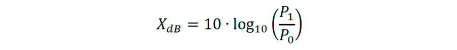 Soient deux puissances acoustiques P0 et P1, leur valeur relative en décibels vaut :