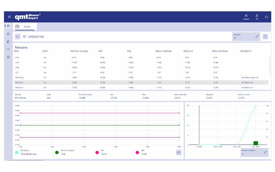 Après configuration du logiciel, le lancement de la mesure est réalisé par la définition d’un lot qui se référence à une famille de pièces et à une configuration spécifique.